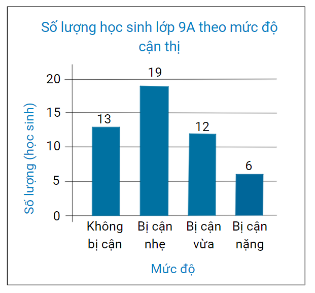 Giáo viên khảo sát về tình trạng mắt của học sinh lớp 9A và tạo được biểu đồ bên dưới. Xác suất học sinh bị cận nặng trong lớp là bao nhiêu?