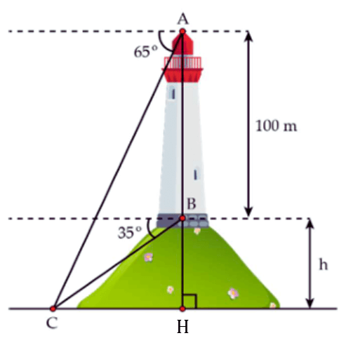 Trên quả đồi có một cái tháp cao 100 m. Từ đỉnh A và chân B của tháp nhìn điểm C ở dưới chân đồi các góc tương ứng là và