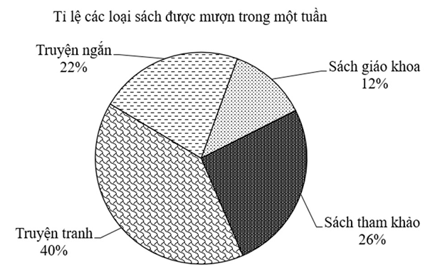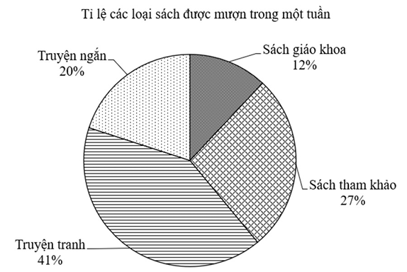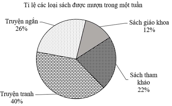 Bảng thống kê sau cho biết số lượt mượn các loại sách trong một tuần tại thư viện của một trường Trung học cơ sở: