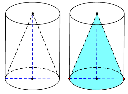 Từ một khúc gỗ hình trụ cao , người ta tiện thành một hình nón (như hình vẽ). Biết phần gỗ bỏ đi có thể tích là