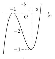 Cho hàm số y = f(x) có đạo hàm trên R và có đồ thị như hình vẽ.