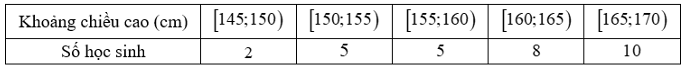 Bảng số liệu ghép nhóm sau cho biết chiều cao (cm) của 30 học sinh lớp 12A: