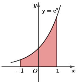 Cho đồ thị hàm số y = ex và hình được tô màu như hình vẽ.