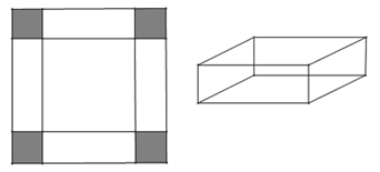 Cho một tấm nhôm hình vuông cạnh 12 cm. Người ta cắt bốn góc của tấm nhôm đó bốn hình vuông bằng nhau, mỗi hình vuông có cạnh bằng x (cm), rồi gập tấm nhôm lại như hình vẽ dưới đây để được một cái hộp không nắp.