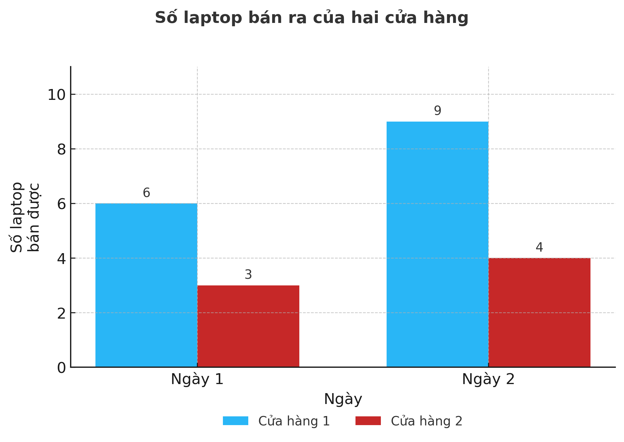Cho biểu đồ thống kê số laptop được bán ra trong hai ngày của hai cửa hàng điện tử: