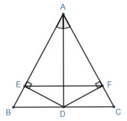Cho tam giác ABC có AB = AC. Gọi AD là tia phân giác của (D ∈ BC). Kẻ DE ⊥ AB tại E, DF ⊥ AC tại F.