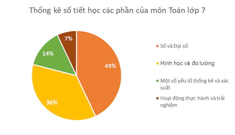 Cho biểu đồ hình quạt dưới đây biểu diễn số tiết học phần của môn Toán lớp 7