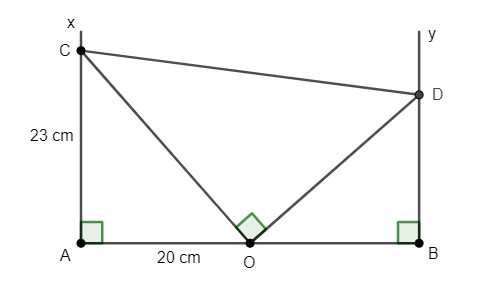 Cho đoạn thẳng AB có trung điểm O. Vẽ về một phía của AB các tia Ax, By vuông góc với AB. Trên tia Ax lấy điểm C, trên tia By lấy điểm D sao cho số đo góc COD bằng 90o.