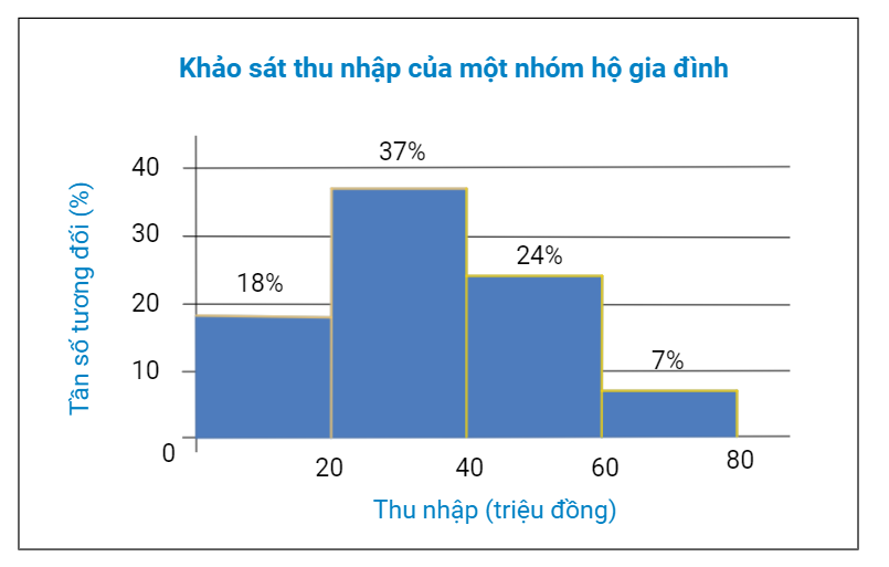 Khảo sát thu nhập của một nhóm hộ gia đình thu được kết quả tại biểu đồ sau: