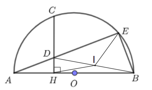Trên nửa đường tròn tâm O đường kính AB, lấy điểm C (C khác A và B). Từ C kẻ đường thẳng CH vuông góc với AB tại H. Gọi D là điểm bất kì thuộc đoạn HC (D khác C và H). Đường thẳng AD cắt nửa đường tròn tại điểm thứ hai là E.