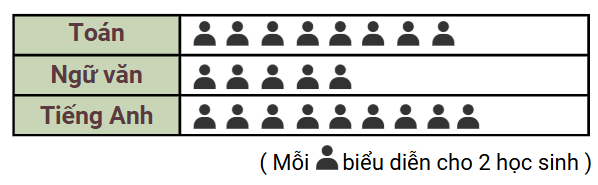Cho biểu đồ tranh biểu diễn số lượng học sinh tham gia đội tuyển 3 môn: Toán, Văn, Tiếng anh.
