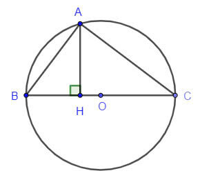 Cho (O) đường kính BC và điểm A thuộc (O) sao cho AB = 6 cm, AC = 8 cm. Gọi H là chân đường vuông góc hạ từ A xuống BC.