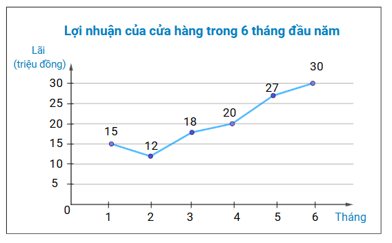Biểu đồ đoạn thẳng dưới đây biểu diễn lợi nhuận có được của một cửa hàng trong 6 tháng đầu năm.