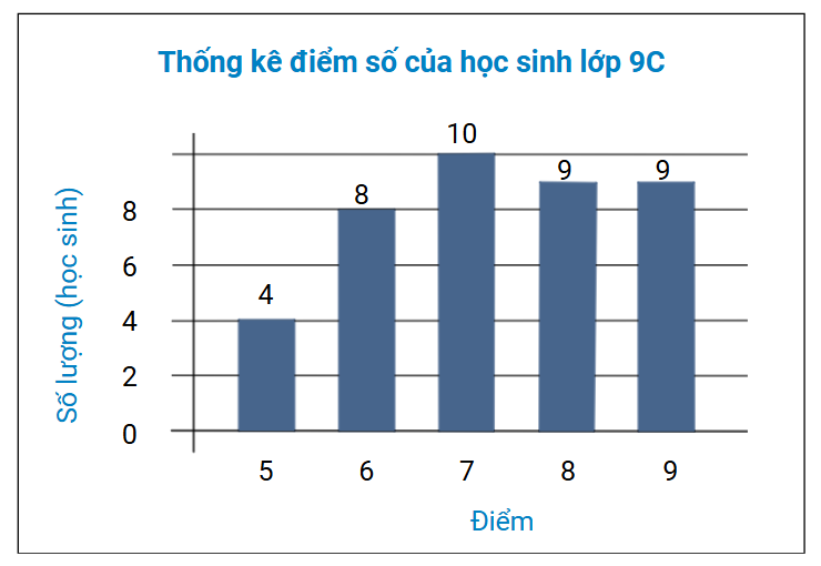Thống kê điểm số của học sinh lớp 9C trong một bài kiểm tra, giáo viên thu được biểu đồ hình cột sau: