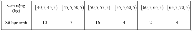 Cân nặng của học sinh lớp 9A được cho trong bảng sau: