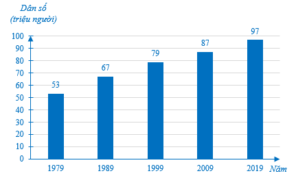 Biểu đồ dưới đây biểu diễn dân số ước tính của Việt Nam qua các thập niên.