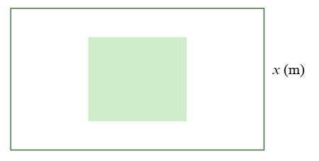 Một khu đất hình chữ nhật có chiều rộng là x (m), chiều dài hơn chiều rộng 6 m. Bên trong có một hồ nước hình vuông. Biết diện tích phần còn lại của khu đất là 214 m2.