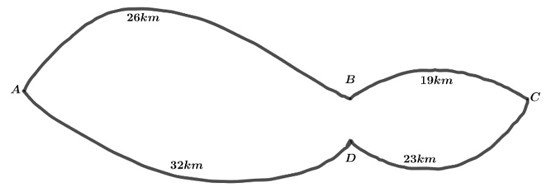 Hai xe bus đi trên tuyến đường như hình vẽ theo lộ trình từ hay