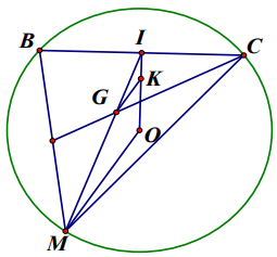 1. Gọi I là trung điểm BC, từ G kẻ GK // OM (K ∈ IO).