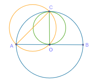 Cho 3 đường tròn có đường kính lần lượt là AB, AC, CO. Chọn biểu thức đúng.