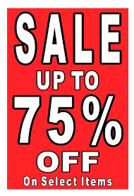 You see this advertising sign in front of a store. What does it say?