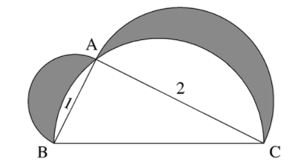 Cho tam giác ABC vuông ở A có AB = 3 cm, AC = 4 cm, BC = 5 cm. Tính diện tích hình tô đậm.