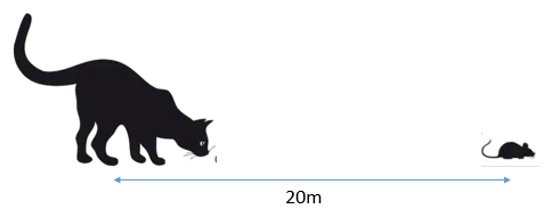 Một con chuột nhìn thấy một con mèo cách nó 20m. Ngay lập tức con chuột liền bỏ chạy về hang cách đó 18m với vận tốc 5m/s. Khi con chuột bỏ chạy thì con mèo cũng đuổi theo với vận tốc 10m/s. Con chuột có kịp chạy vào hang không?