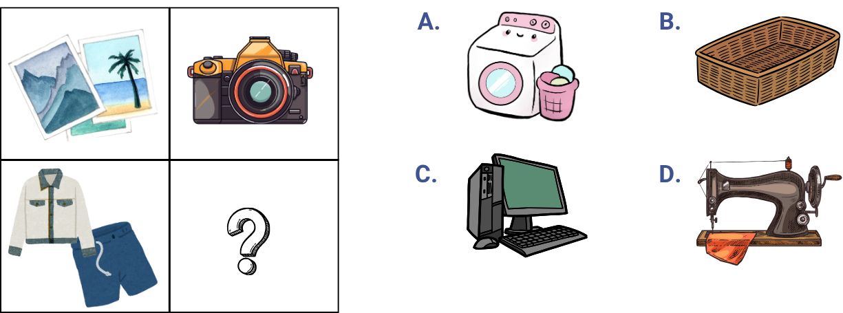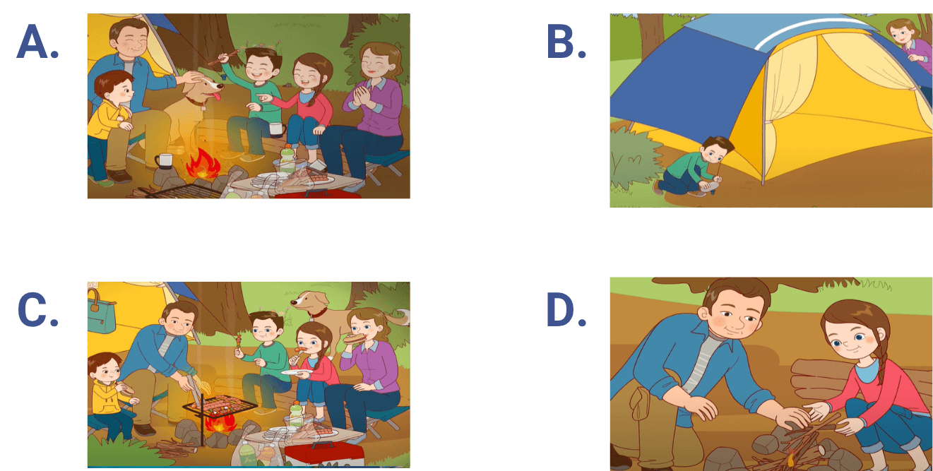 Mom and son set up the tent together. Dad and daughter built a campfire using wood and stones. Then the family had a barbecue. Which photo is the missing step?