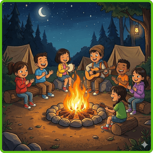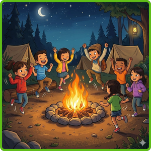 Last summer, I went to a camp in the countryside with my class. We put up our tents near a big tree. Then we built a campfire and sang songs together. At night, our teacher told us a funny story. We took many photos to remember the trip. We were very happy!