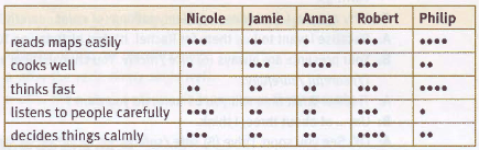 Nicole and her friends are going on a camping trip. They need a leader for their group. Look at the table and complete the sentences. Use the comparative or superlative. Who would be the best leader?