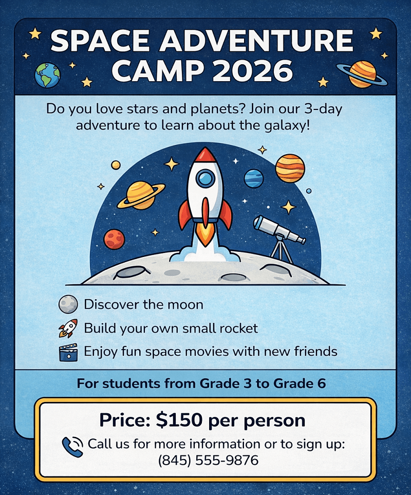 🌍 GLOBAL ENGLISH TOUR 2024 Discover the culture and history of the Anglosphere! Are you ready to improve your English while exploring the world? Join our 15-day journey through iconic nations! 📍 STOP 1: LONDON, UK Visit the historic Big Ben and enjoy hot traditional English tea in a local garden. 📍 STOP 2: NEW YORK, USA Experience the "City that never sleeps". After visiting the Statue of Liberty, we will head to another famous landmark: Times Square! Our tour guides are friendly and will you with fascinating stories about each destination. Departure: June 15th : $2,500/person Note: To participate, all students must apply for a visa at least two months advance. ! Seats are filling up fast because this a once-in-a-lifetime opportunity. Contact us: contact@globaltour.com "Language is the road map of a culture." |