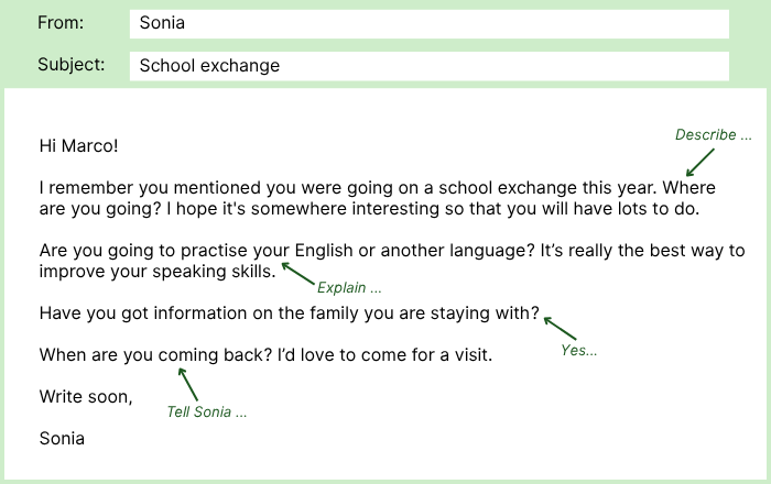 Read this email from your English-speaking friend Sonia and the notes you have made.