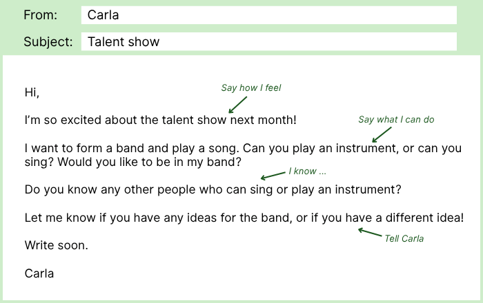 Read this email from your English-speaking friend Carla and the notes you have made.