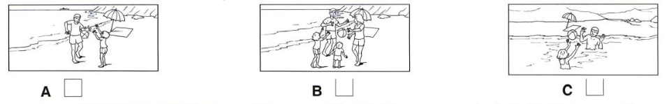 You will hear a man talking to a woman. Which postcard will they send to Mark?