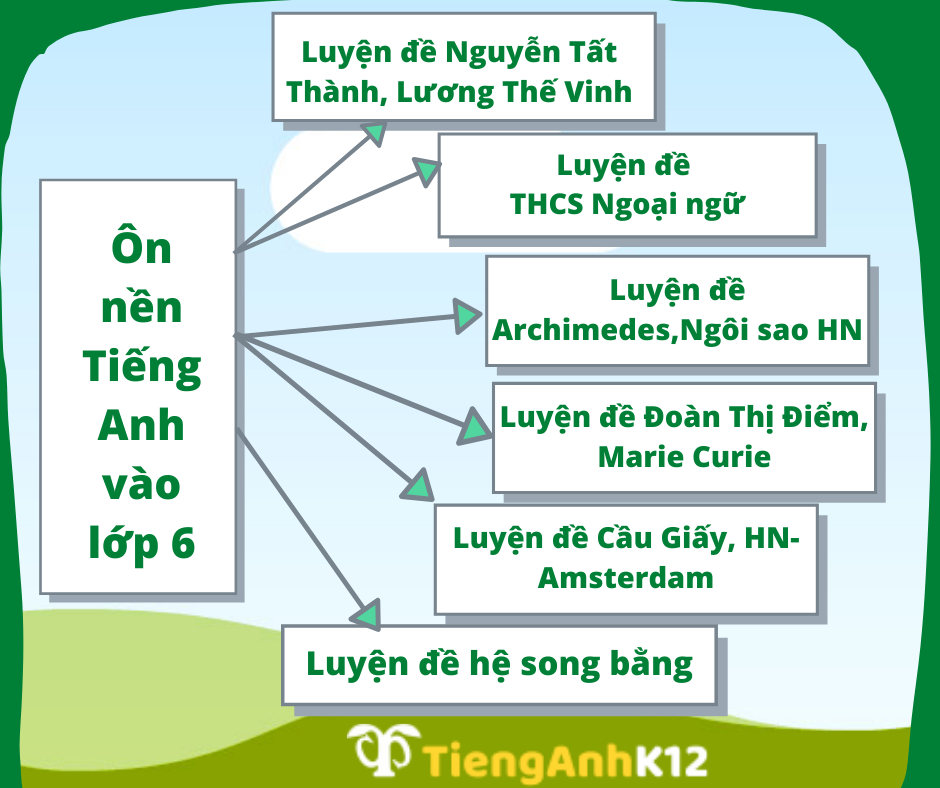 - Ôn thêm các phần từ vựng và ngữ pháp cần bổ sung (so với chuyên mục Ôn thi Tiếng Anh vào lớp 6) để làm tốt bài thi của trường/nhóm trường mục tiêu.